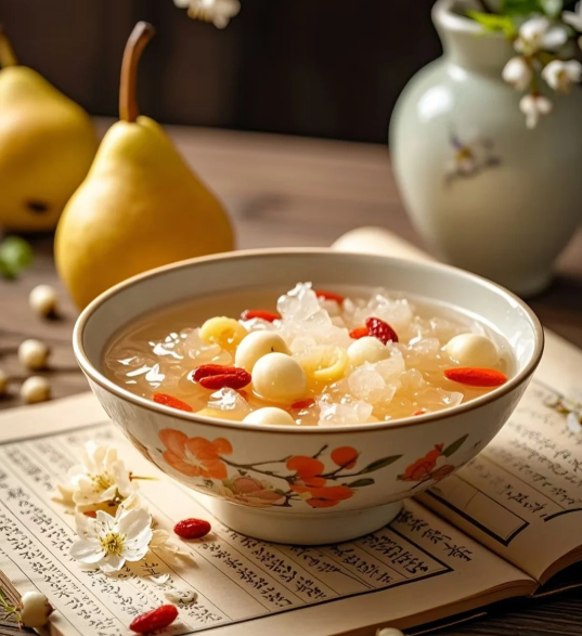 润燥:银耳、百合、梨。煮碗银耳百合羹,或蒸梨(加3-5粒川贝治干咳),脾胃弱别生吃梨。